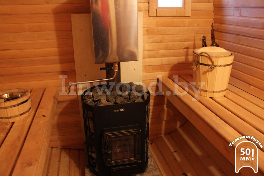 - Installation eines Heißwasserspeichers (30-50l, Volumen hängt von der Badekonstruktion ab) zum Erhitzen von Wasser mit einem Mischer