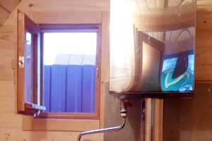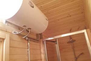 Installation of a boiler (30-50 l, the volume depends on the design of the bath) for heating water with a mixer tap