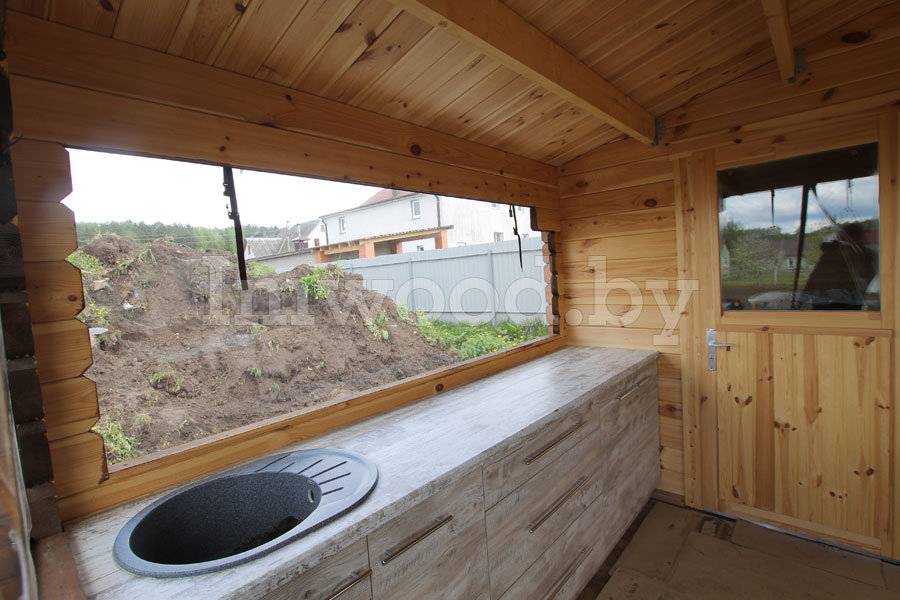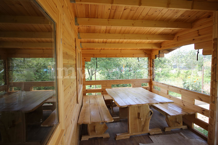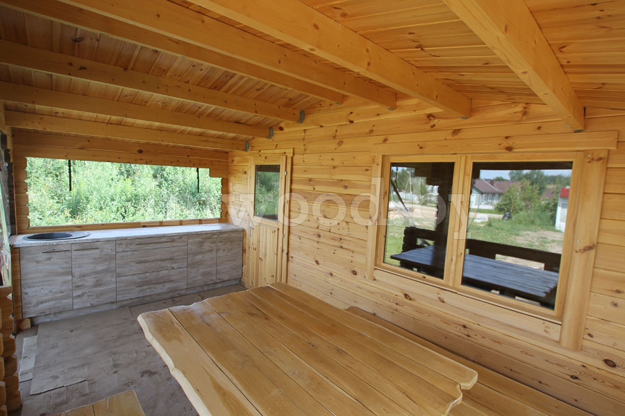 Дом установлен для нашего заказчика в 2021 году. Террасса снаружи защищена от ветра, внутри установлена кухня.