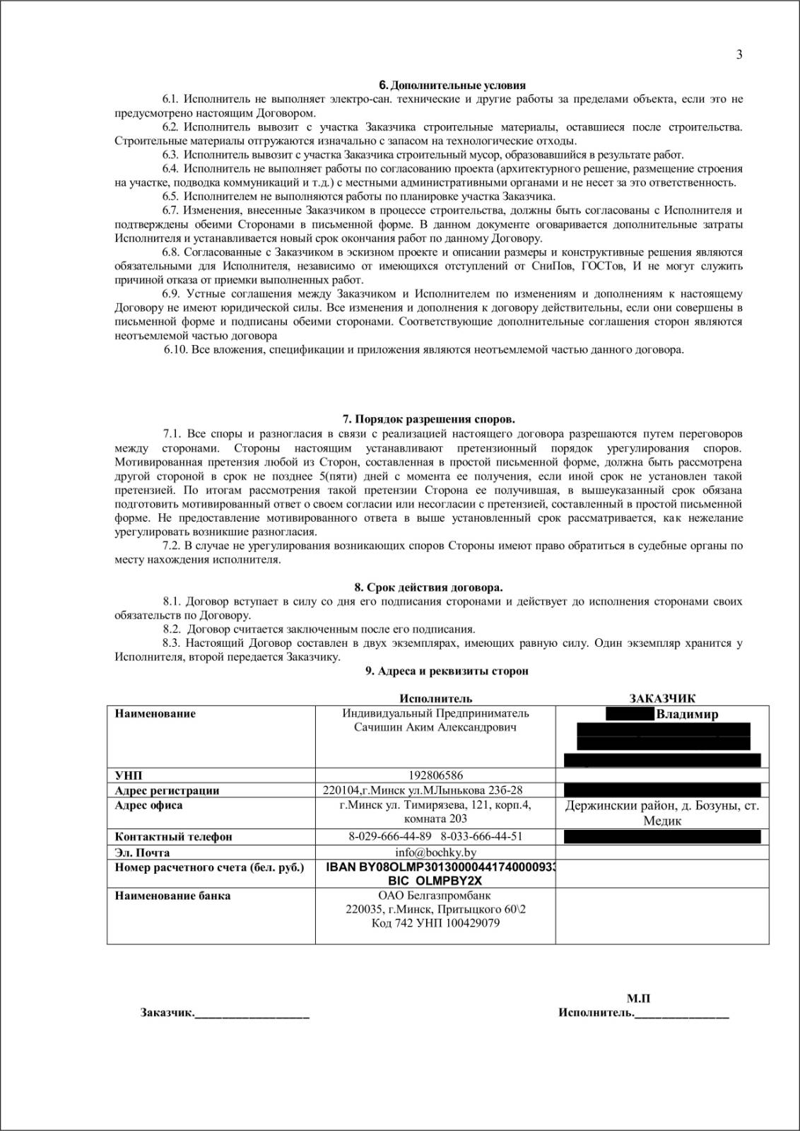 Согласовав проектные решения и бюджет- был заключен договор на строительство, где мы зафиксировали все моменты и согласовали общую сумму.