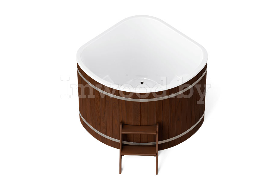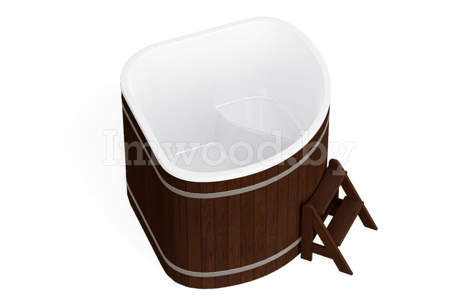 Купель оборудована сидением, внутренней лестницей и приставной наружной лестницей.