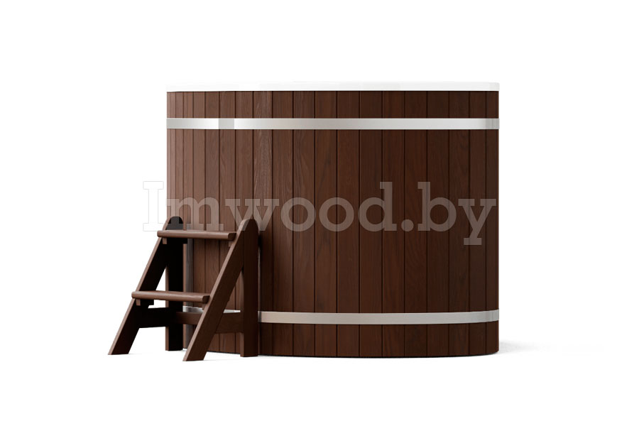 Наши современные купели оснащены пластиковой вставкой из композитного пластика высокого качества. Такая особенность позволяет обойтись от постоянного наполнения водой купели, поэтому вы можете, не боясь наполнять и сливать воду, в том числе зимой в мороз. Благодаря композитной пластиковой вставке Вы навсегда забудете о каком-либо сервисе или вопросах, связанных с использованием купели (протечки, не герметичность), потому что срок службы композитного пластика – более 50 лет на открытом воздухе.