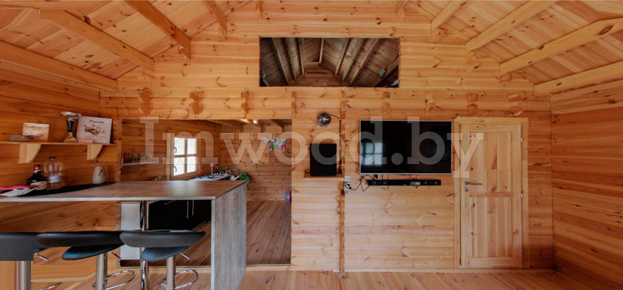 - Часть внутреннего объема дома имеет высокий потолок до 4 метров.