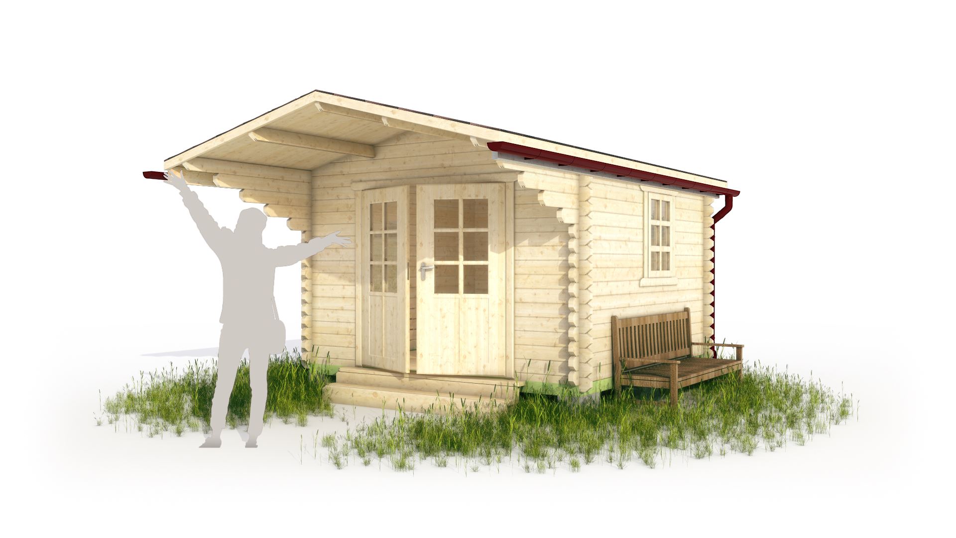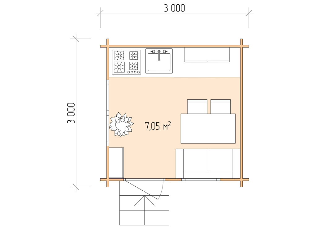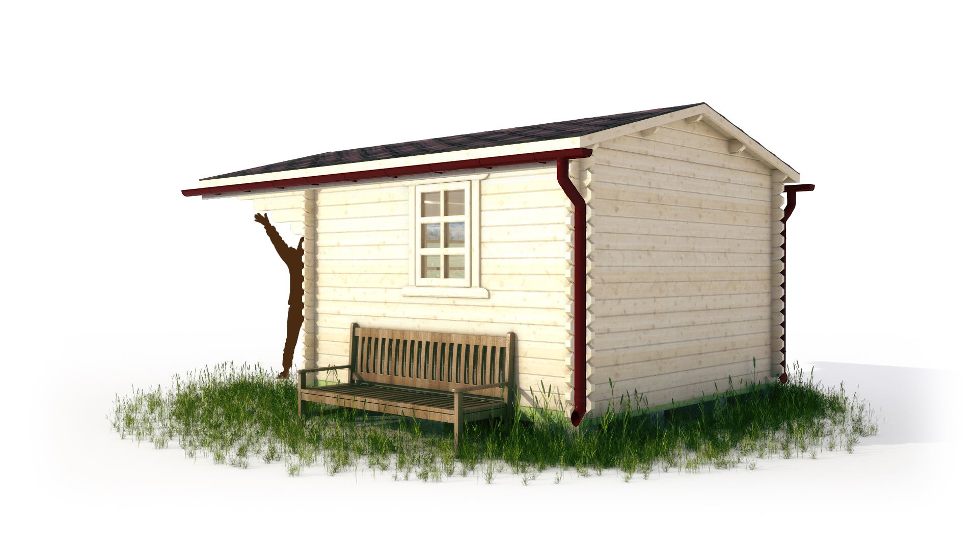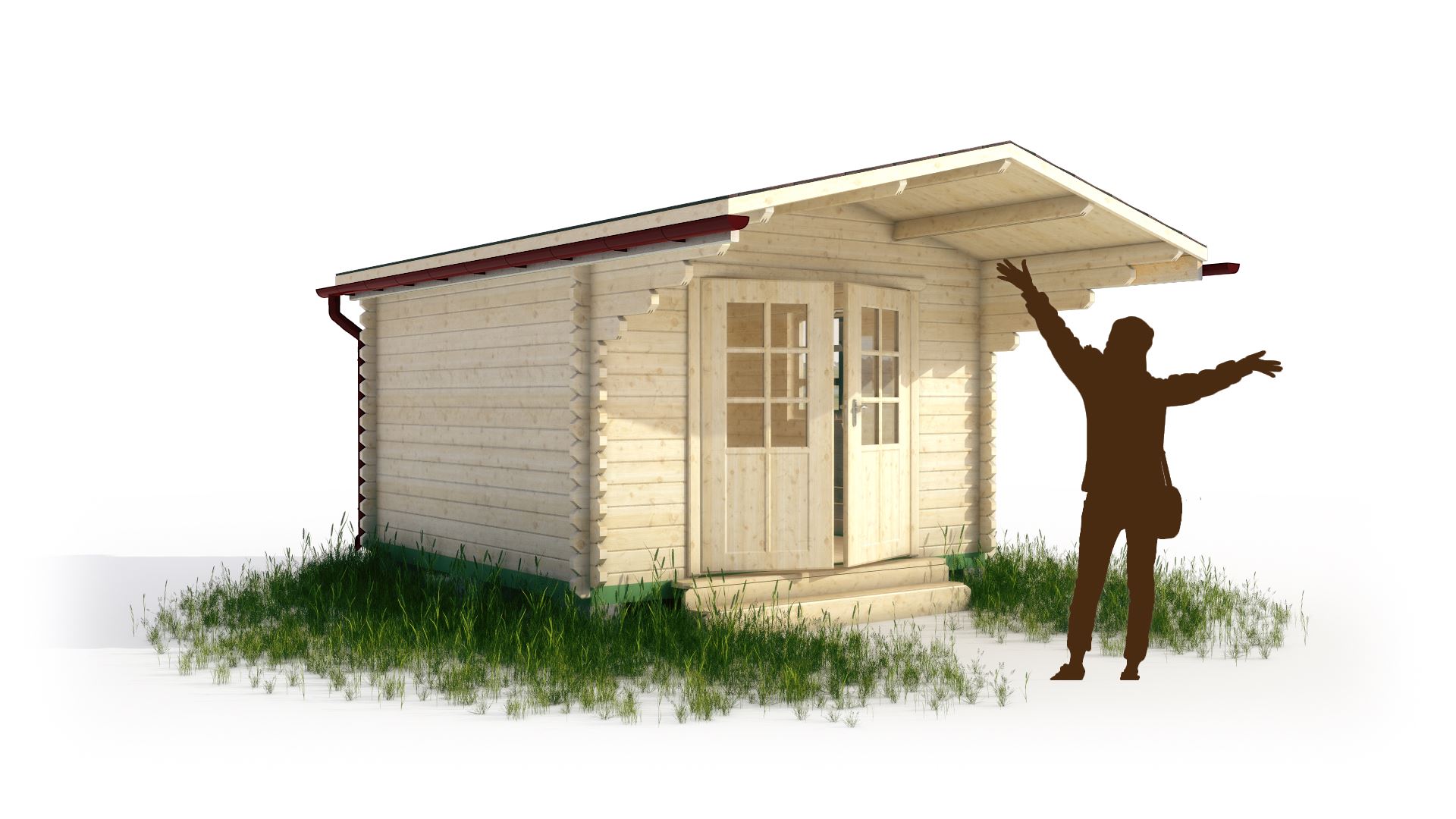 Домик с навесом произведен из профилированного бруса северных регионов России 44х145мм с двойным шипом и зарезанными чашами.