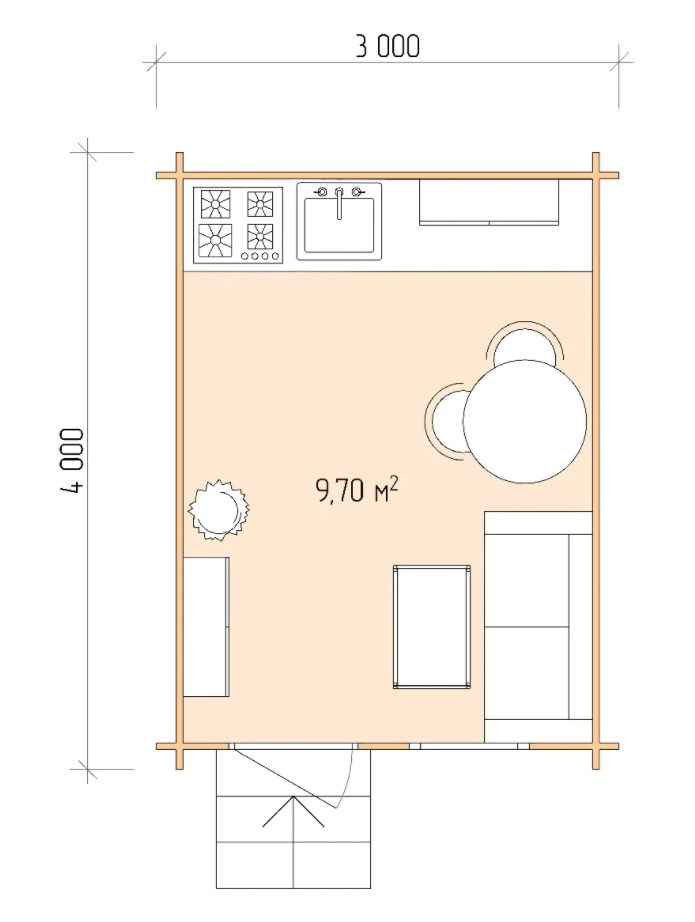 Домик с навесом произведен из профилированного бруса северных регионов России 44х145мм с двойным шипом и зарезанными чашами.