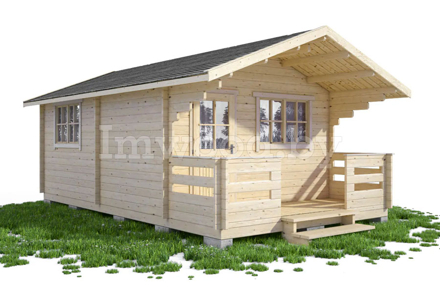 Домик с навесом произведен из профилированного бруса северных регионов России 44х145мм с двойным шипом и зарезанными чашами.