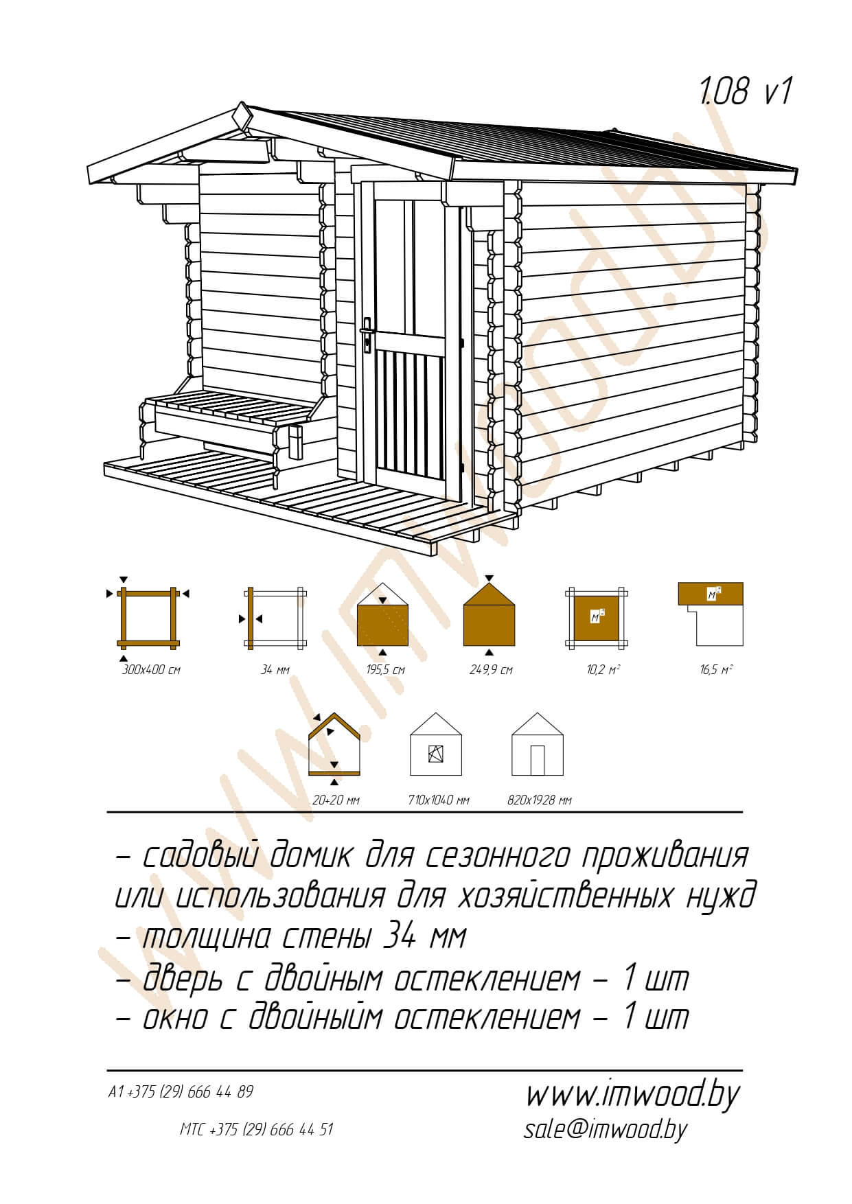 Дачный домик 1.08, размер 3х4м - изготавливается из профилированного бруса технической сушки и после возведения у Вас на участке – полностью готов к использованию.