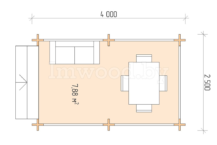 Беседка произведена из профилированного бруса 44х145мм с двойным шипом и зарезанными чашами. Брус изготовлен из древесины северных регионов России. Сборка осуществляется с помощью непродуваемых ветровых замков, которые обеспечивают надежность и устойчивость конструкции.