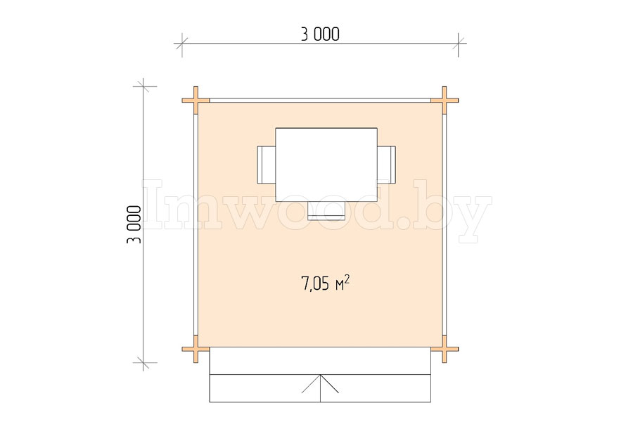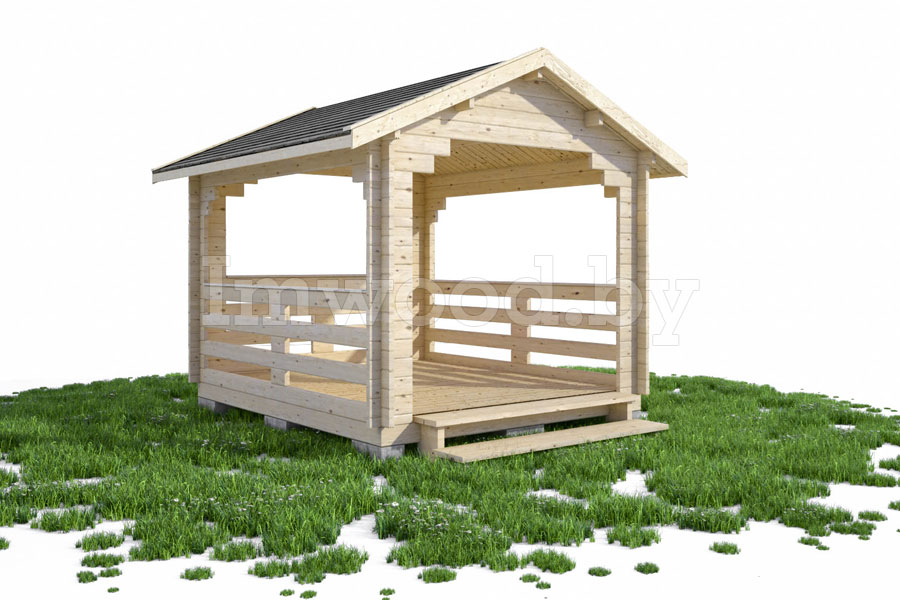 Беседка произведена из профилированного бруса 44х145мм с двойным шипом и зарезанными чашами. Брус изготовлен из древесины северных регионов России. Сборка осуществляется с помощью непродуваемых ветровых замков, которые обеспечивают надежность и устойчивость конструкции.