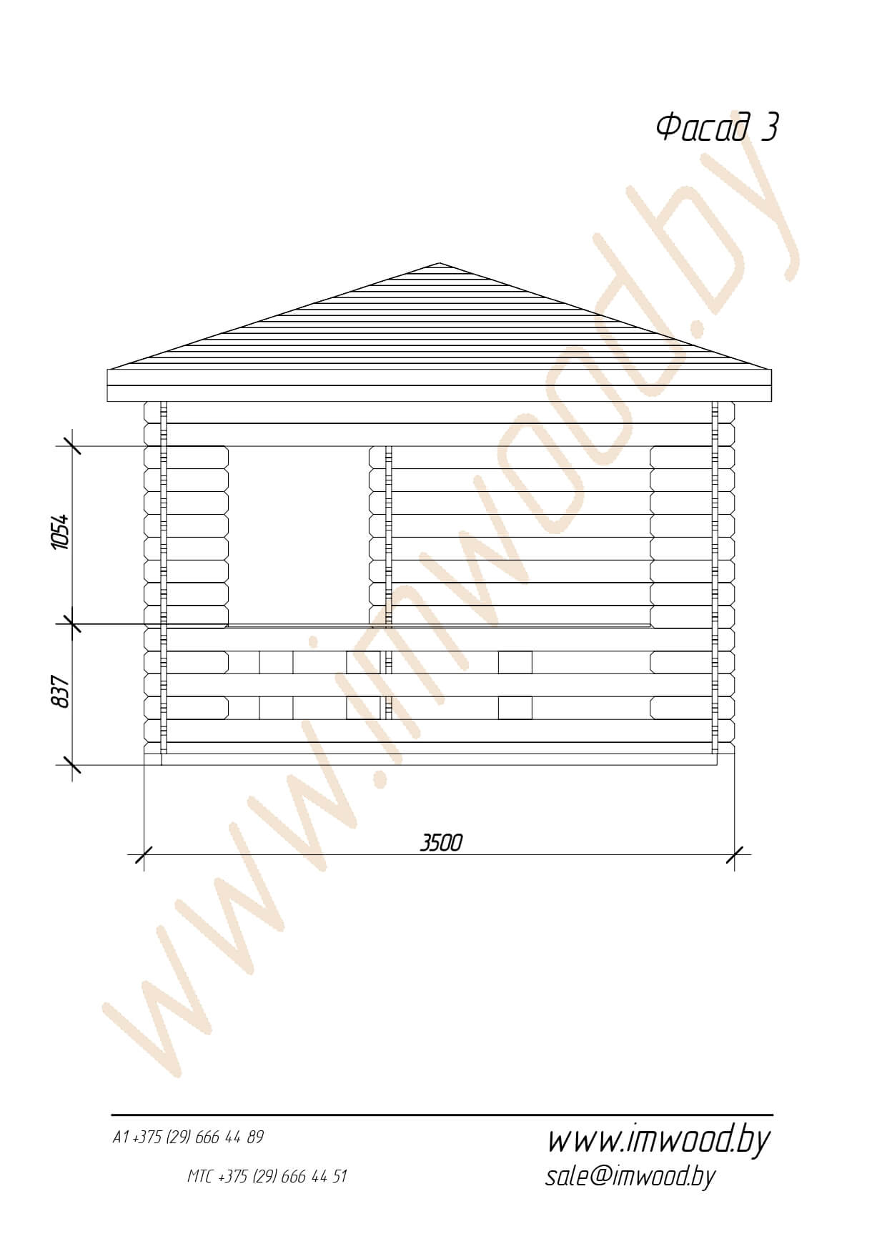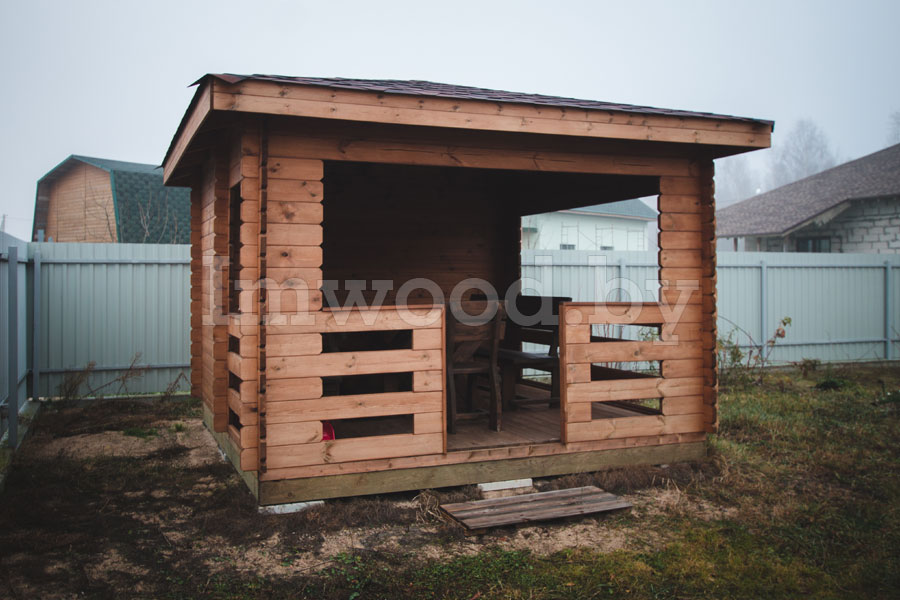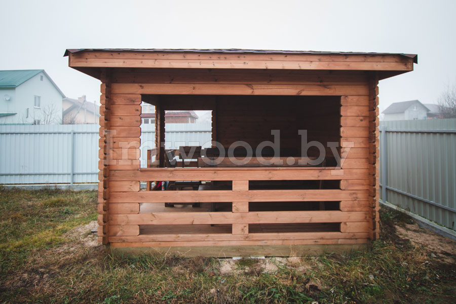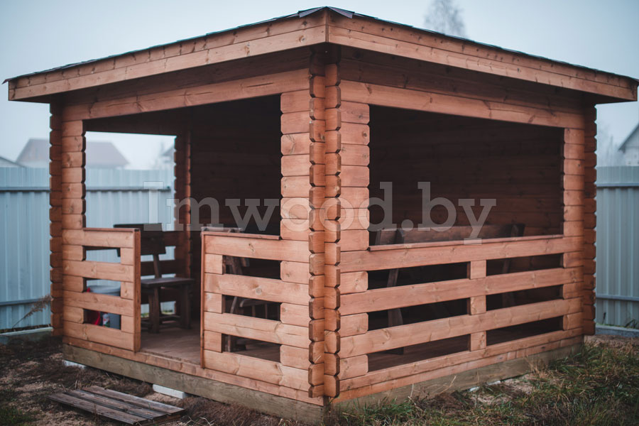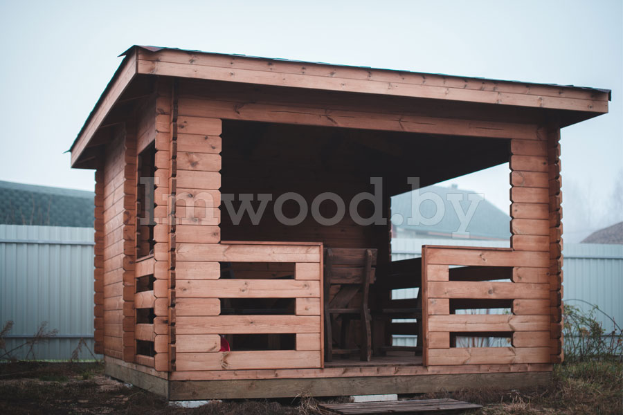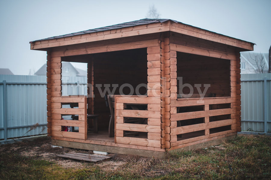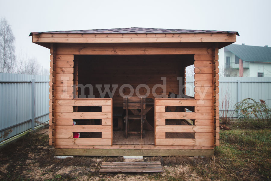 Данная модель беседки представляет собой четырёхгранную полузакрытую беседку со скатной крышей и высоким потолком. Размер беседки 3,5х3,5 метра – что является эталонным размером для такого рода строения. Беседка вместит в себя до 10 человек и станет на вашем участке незаменимым строением для отдыха и шашлыков.