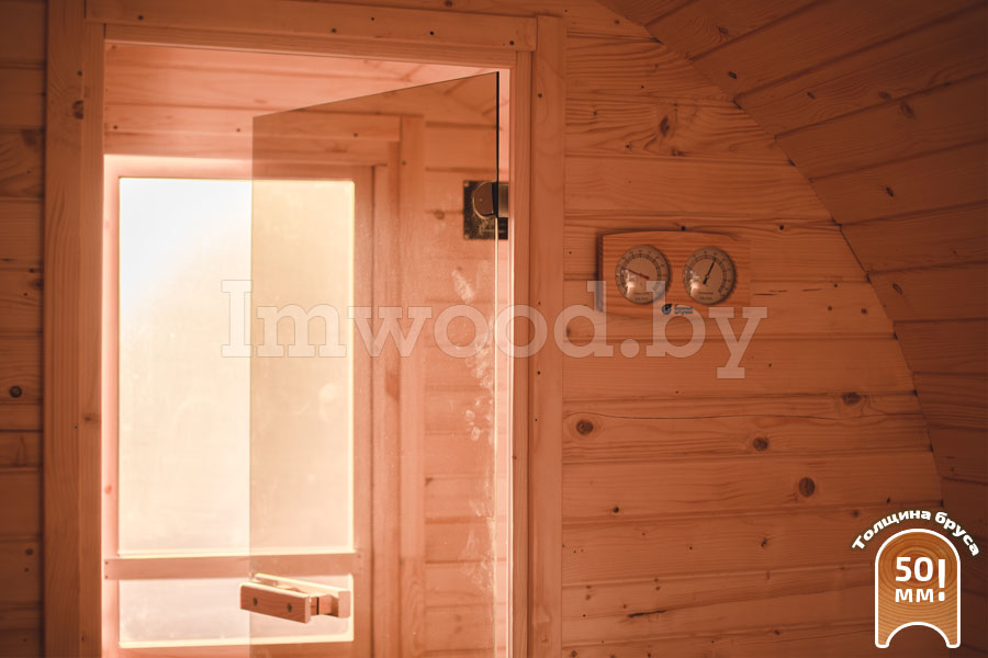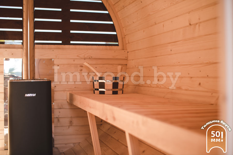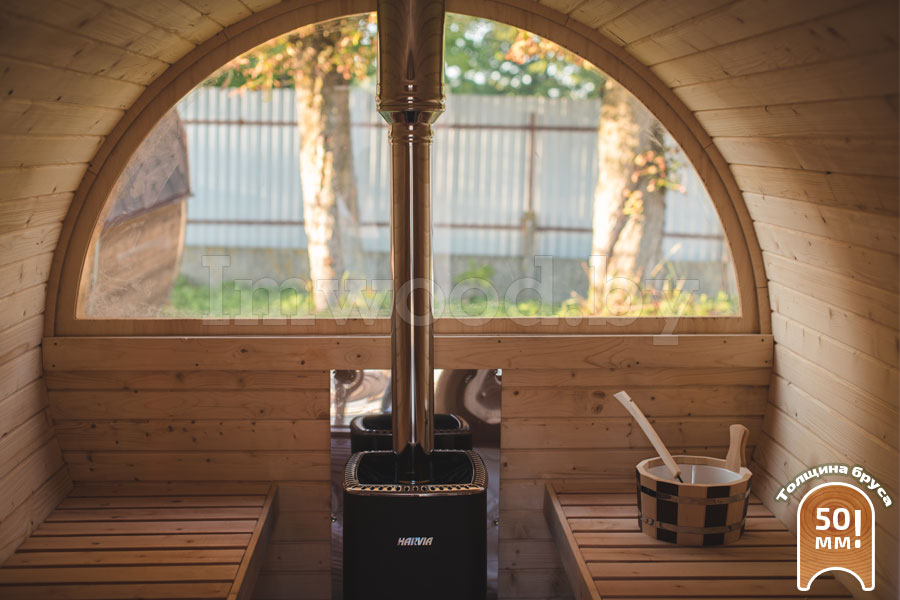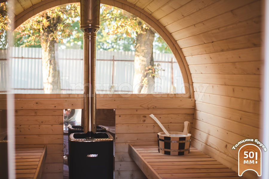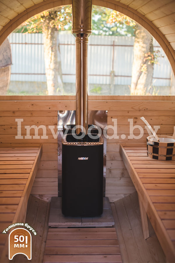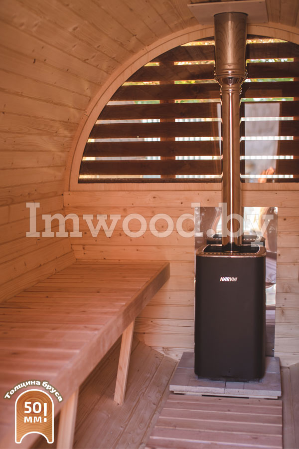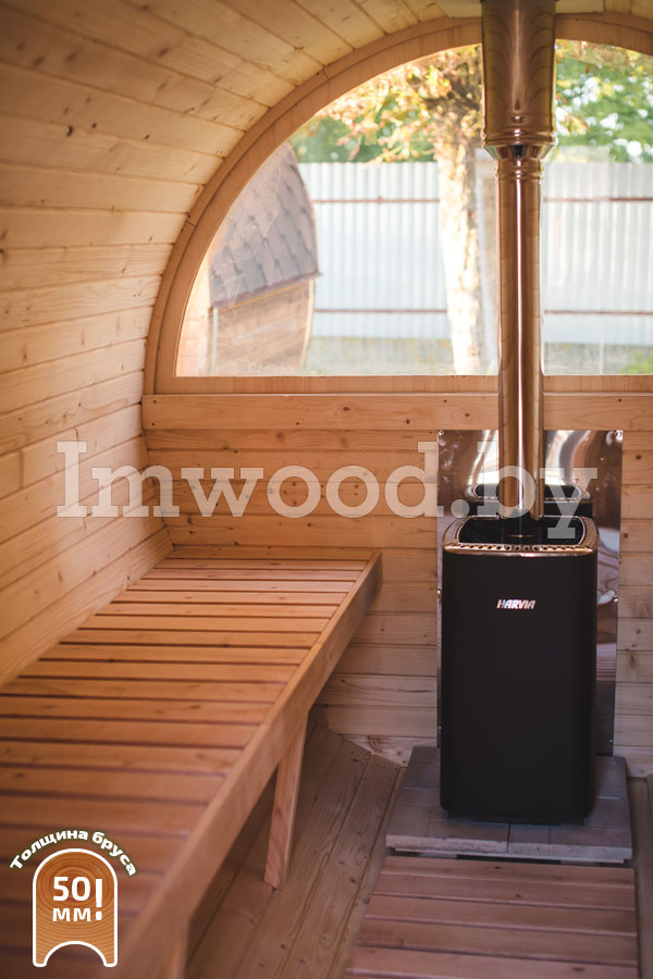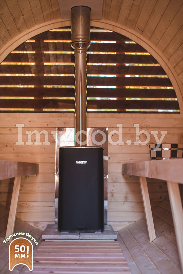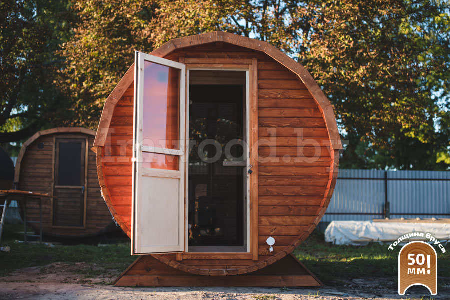 - Увеличенный диаметр 2,25м - это существенно просторнее типовых бань диаметром 2м