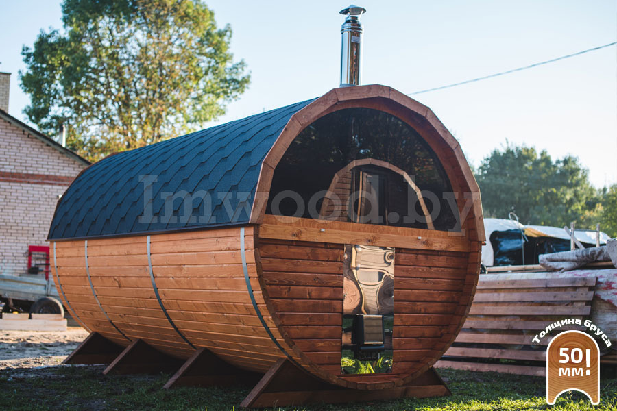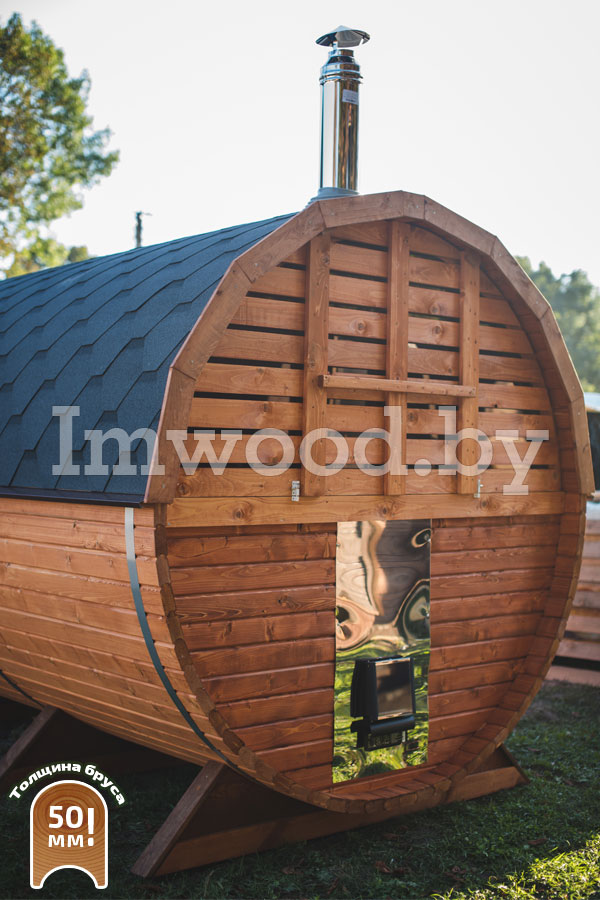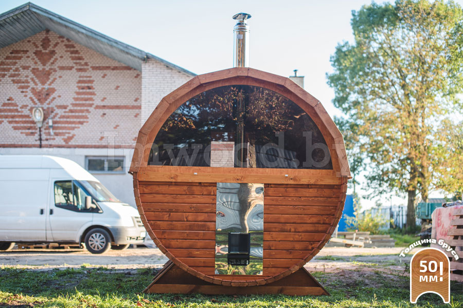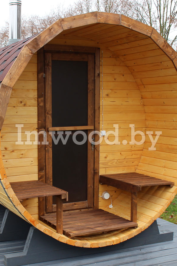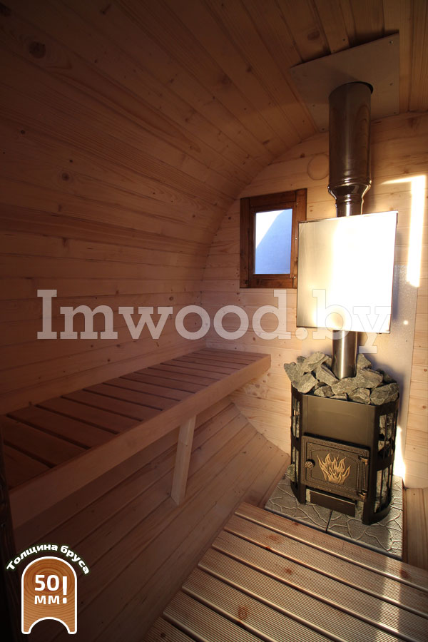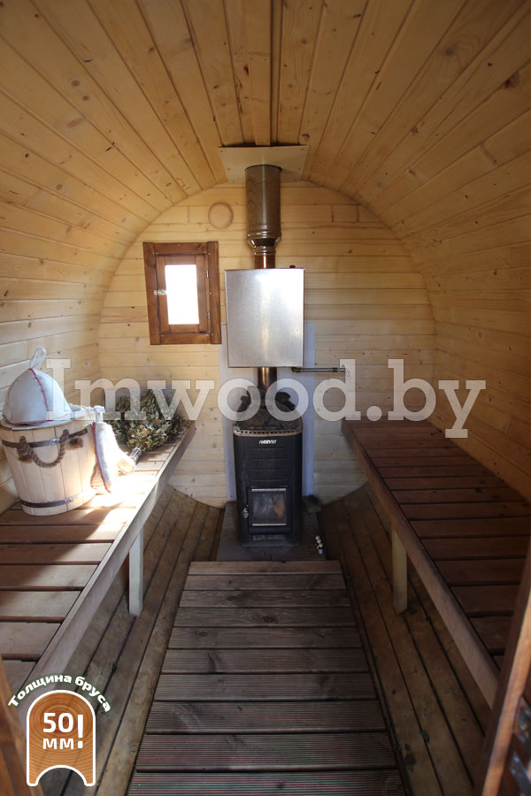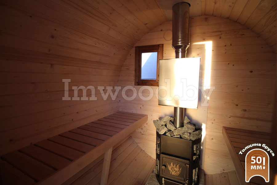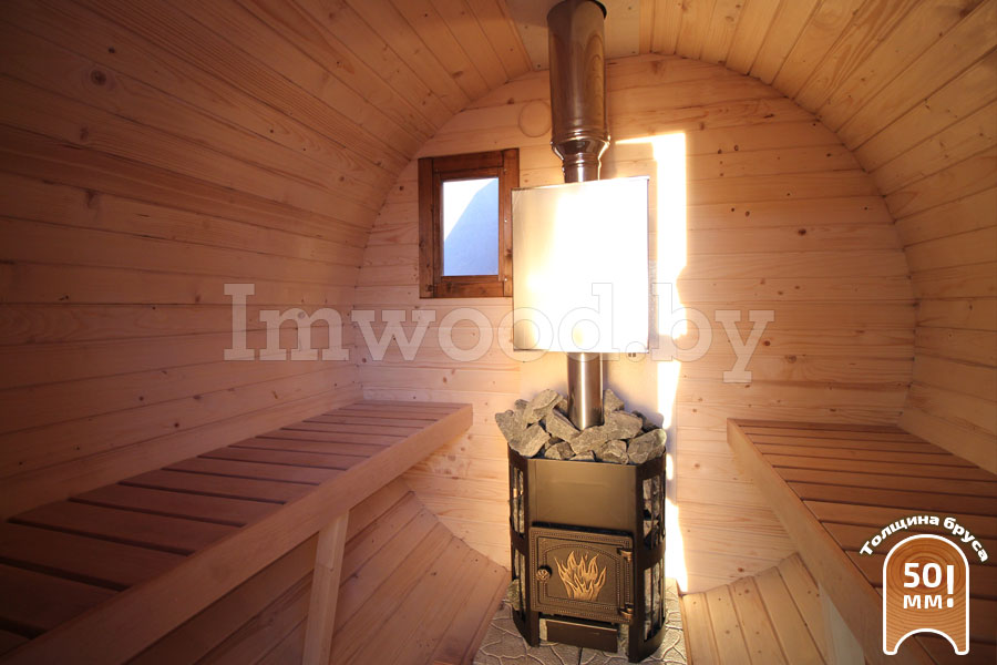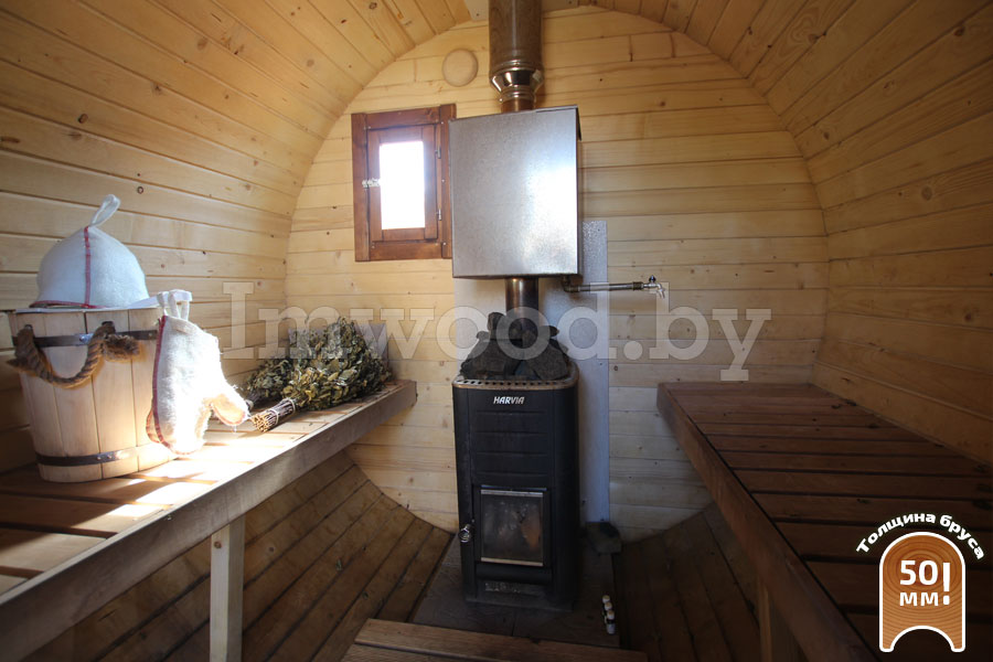 - Увеличенный диаметр 2,25м - это существенно просторнее типовых бань диаметром 2м