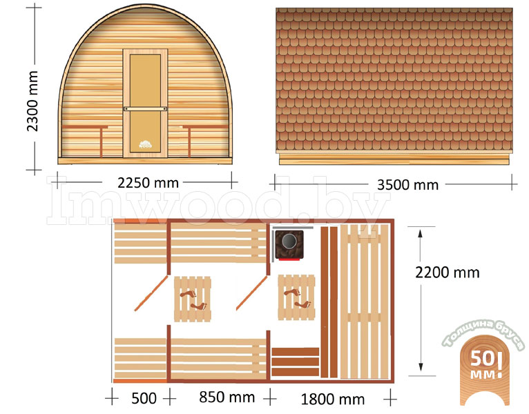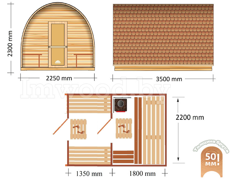 - Сборка на Вашем участке в любом месте - вам не придется переживать о том, как доставить баню на участок