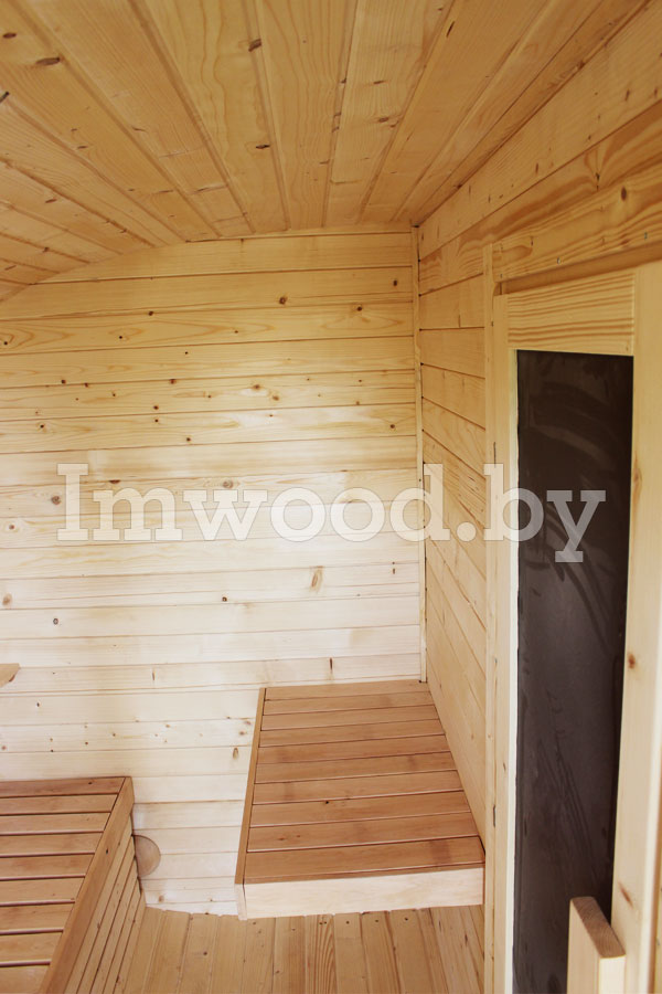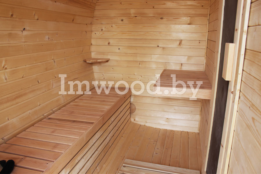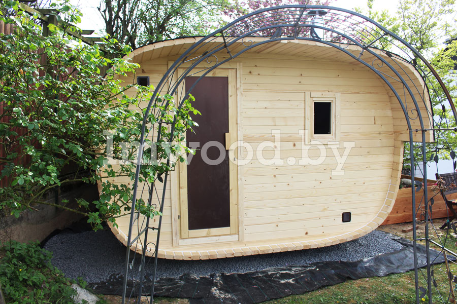 Овальная баня-бочка без проблем разместится на участке любых размеров. Основным отличием модели овальной бани 3.5 на 2.5 метра - является компактность при просторных внутренних помещениях, в которых парильщик будет себя чувствовать комфортно.