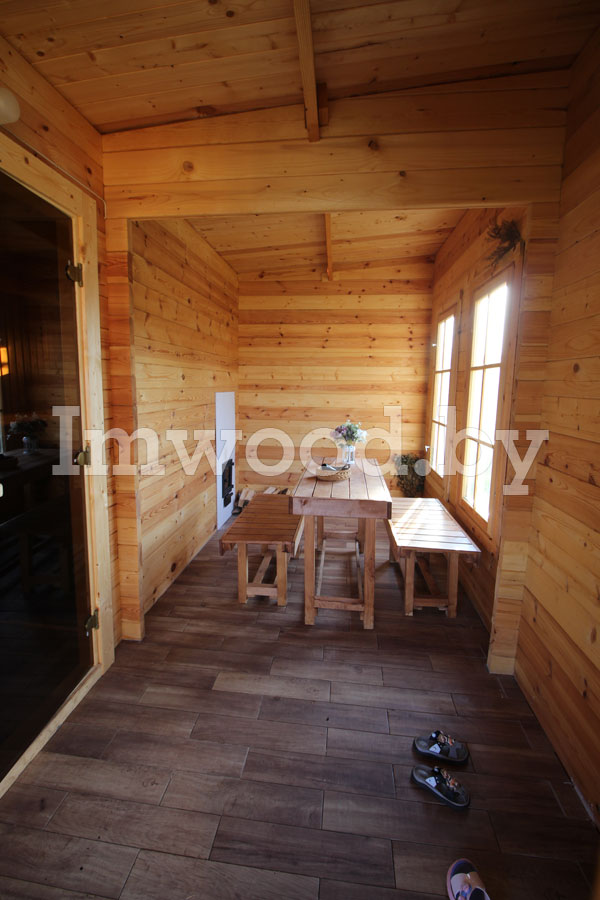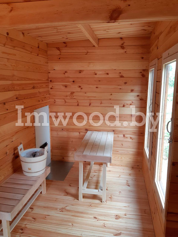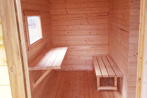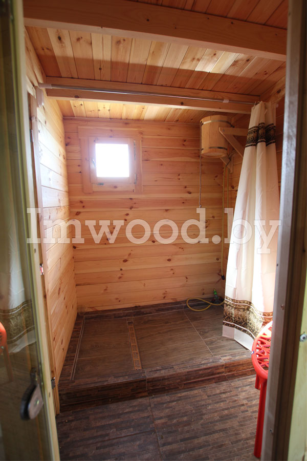 Важным нюансом такой бани, в отличие от подобных деревянных бань других производителей – конструкция пола, которая предусматривает укладку кафельной плитки и, как следствие, беспроблемную эксплуатацию и гигиену.