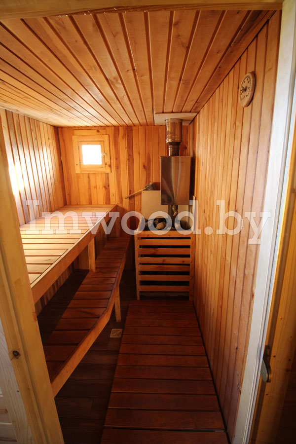- парная с двухуровневым пологом длинной 2,1 метра, а также печь, которая топиться из комнаты отдыха.