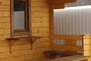 Баня выполнена из сухого бруса. А парная имеет дополнительные стены, изготовленные по каркасной технологии – для максимального сохранения тепла. Толщина стен парной около 130 мм