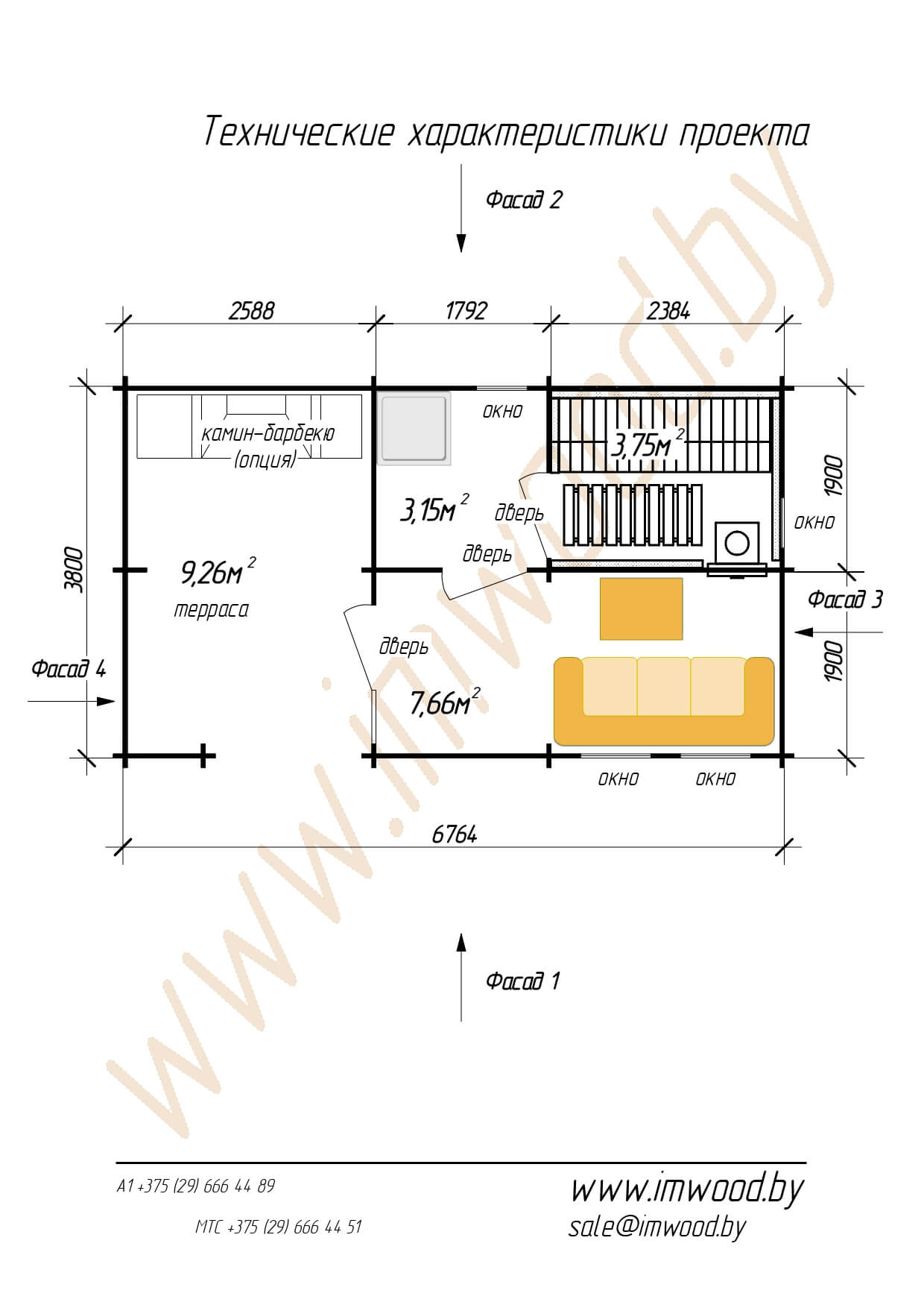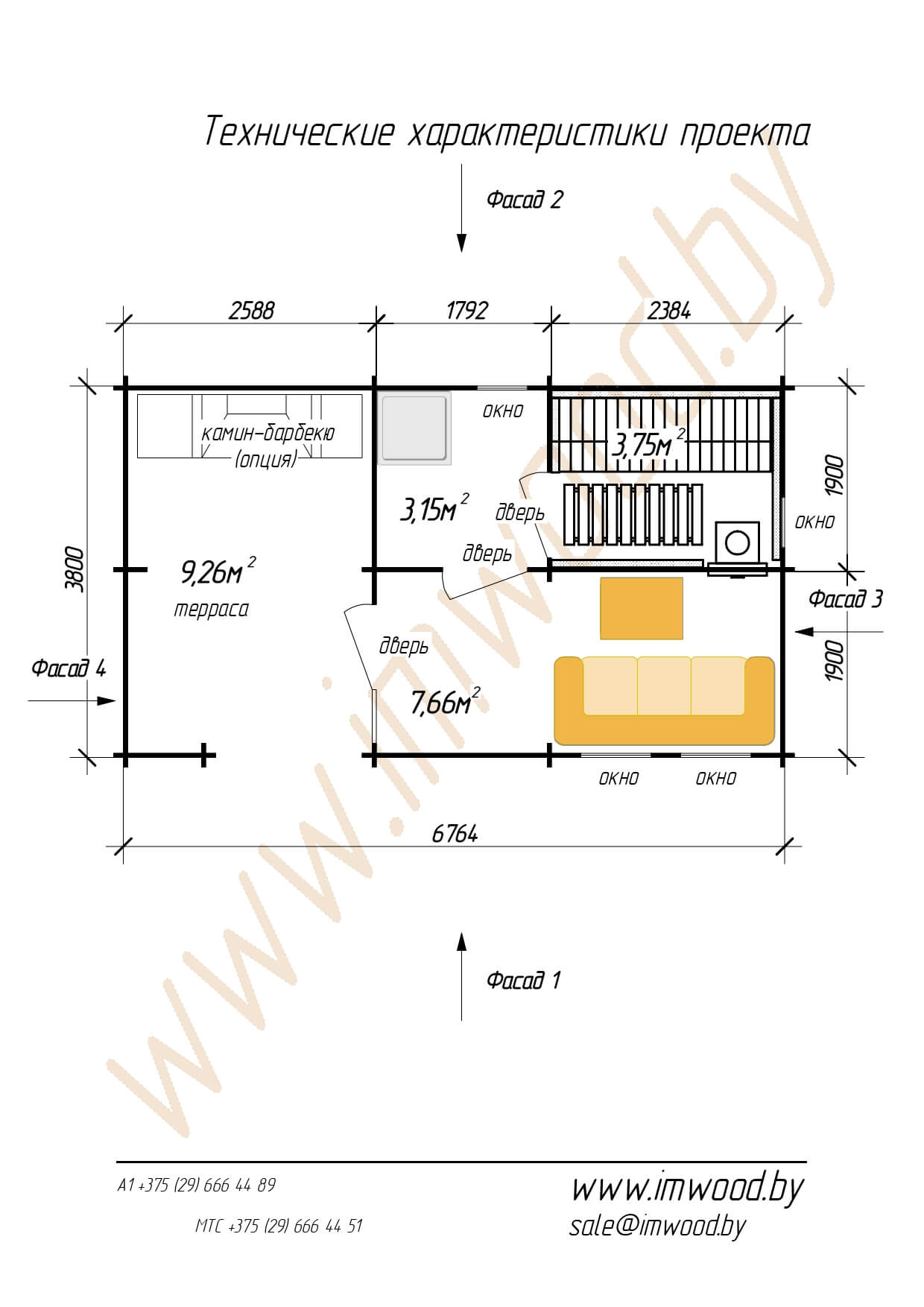 - Уютной террасы 4х2,5 метра с крышей и камином-барбекю,