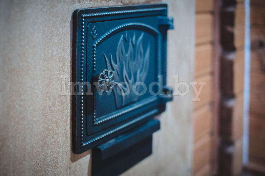 Печь может быть установлена топкой в комнату отдыха. В этом случае можно наслаждаться наблюдением за горящим огнем. А также можно опционально добавить печь-камин для еще большего наслаждения горящим огнем.