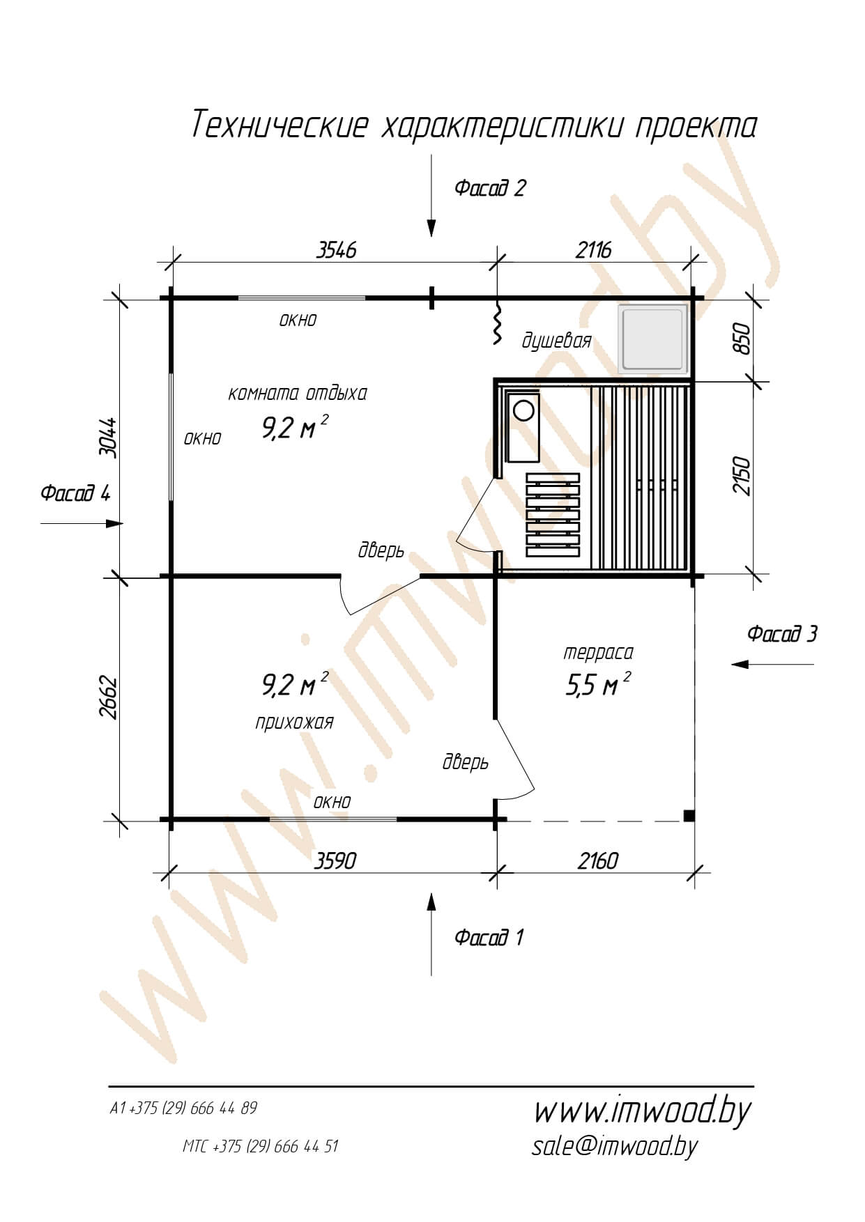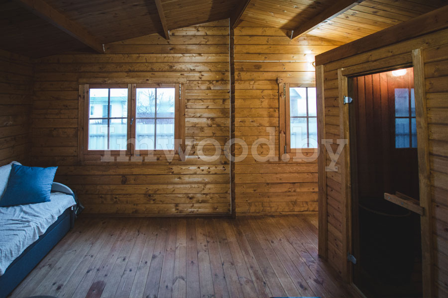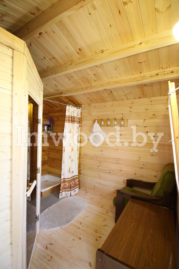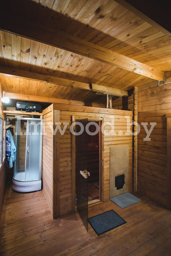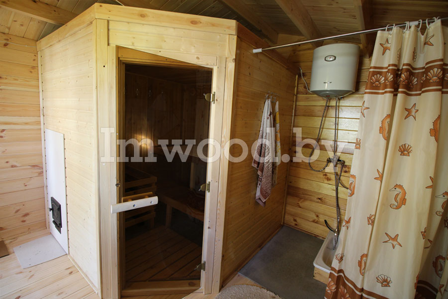 - основная большая комната отдыха, в которую с легкостью можно установить душевую кабинку, стол, диван или лавочки,