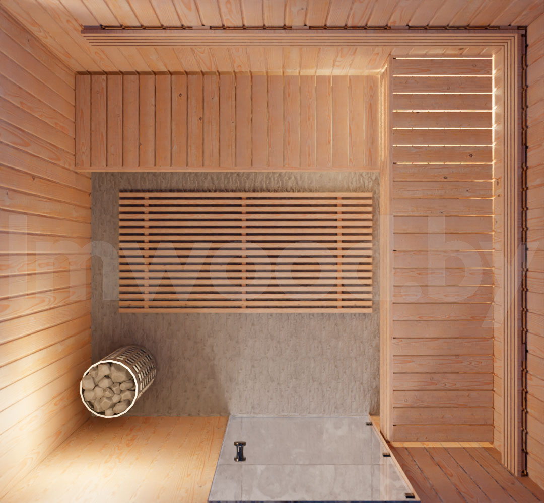 - Поставляется без электрокаменки: рекомендуемая мощность каменки: 6,0-9 кВт